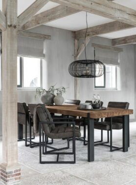 Materiaal: gerecycled teakhout – zwarte beits – zwart metalen frame